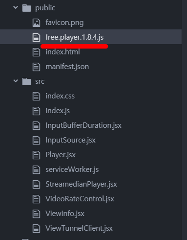 따라서 free.player.1.8.4.js을 Rtsp프로젝트로부터 React 프로젝트의 public 경로에 복사 후 붙여 넣기 해줍시다.
