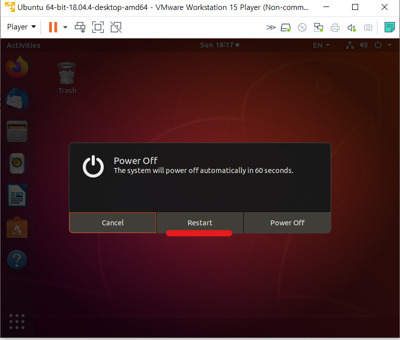 우분투를 실행하거나 실행되어있다면 restart를 통해 우분투를 재시작합니다.
