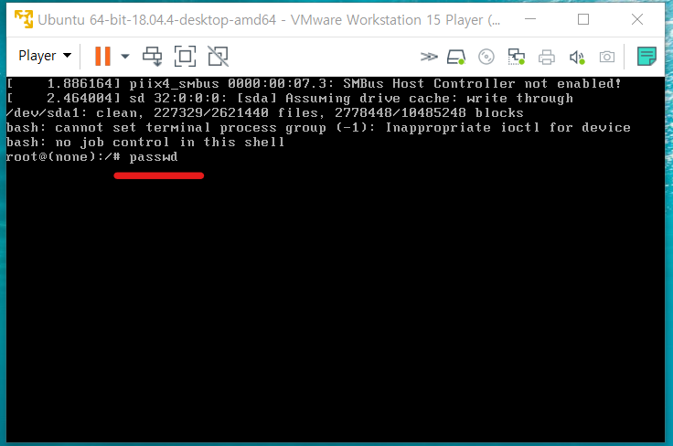 저처럼 아래에 root 계정이 보이시다면 잘 진행하셨습니다. passwd 명령을 통해 비밀번호 재설정을 진행해줍니다.